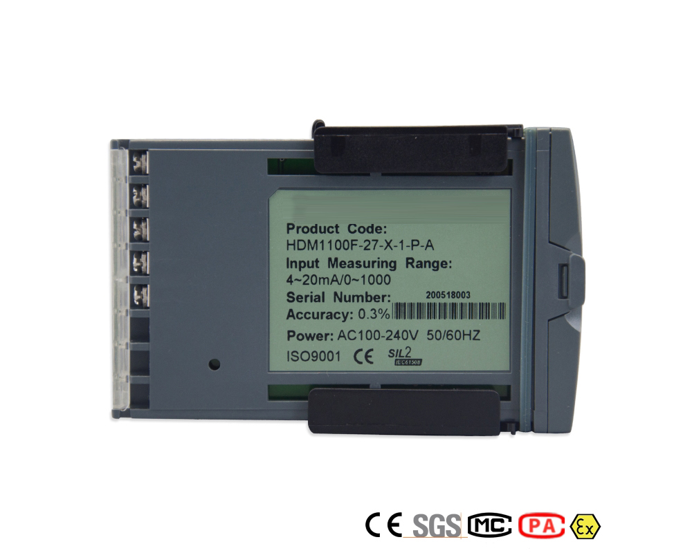 仪表的表芯可以从表壳中拔出,其方法是将仪表前面板两侧的锁扣向外侧拨开,然后抓住仪表的前面板向外拔,即可使表芯与表壳分离。在回装时,将表芯插入表壳后一定要推紧,并将锁扣锁紧,以保证防护标准。