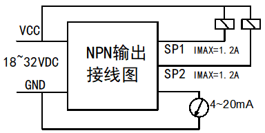 ◆ 4位数字显示当前温度值 ◆ 温度预设开关点和延滞切换输出 ◆ 开关量可在零点到满度之间设定 ◆ 外壳设有节点动作发光二级管,便于观察 ◆ 按键调校及现场设置参数,操作方便 ◆ 2路开关量输出,带载能力1.2A ◆ 模拟量输出(4~20mA)