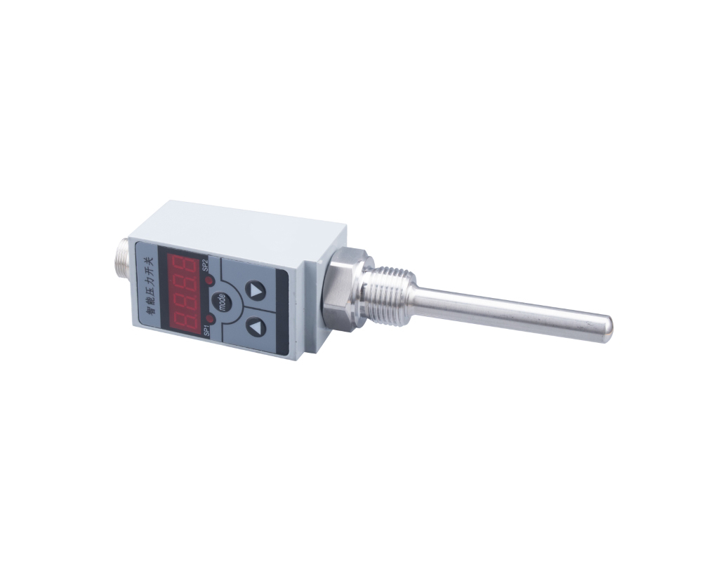 HTM560智能温度开关是集温度测量,显示,输出、控制于一体的智能数显温度测控产品。该产品为全电子结构,前端采用PT100 温度传感器,输出信号由高精度,低温漂的放大器放大处理,送入高精度的 A/D 转换器,转换成微处理器可以处理的数字信号,经过运算处理的信号控制两路开关,对控制系统温度进行测控。该智能数字温度开关使用灵活,操作简单,调试容易,安全可靠。广泛应用于水电,自来水,石油,化工,机械,液压等行业,对流体介质的温度进行测量显示和控制。