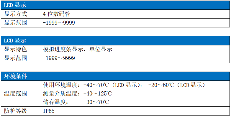 ◆ 4位LED或LCD现场显示 ◆ 支持各种类型开关量输出 ◆ 按键调校及现场设置各种参数,操作方便 ◆ 外壳设有节点动作发光二级管,便于观察 ◆ 支持螺纹、卡盘等多种过程连接