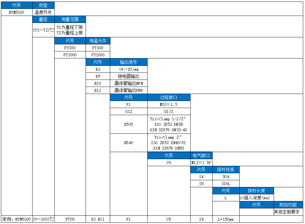 HTM5100型智能温度开关选用高品质和高稳定性的PT100或PT1000作为感测元件,配合专用的电子调理电路,经严格的工艺流程装配和生产而成。该产品带现场显示,可输出一路4~20mA模拟量,同时可以输出两路电子开关量或一路继电器开关量。该产品过程接口多样,支持螺纹安装或卡盘安装等接口。 该产品体积小巧,集温度测量、显示、输出和控制于一体,使用灵活,操作简单,安全可靠,广泛应用于各类自动化机械和设备、环保、石化、水处理等行业。