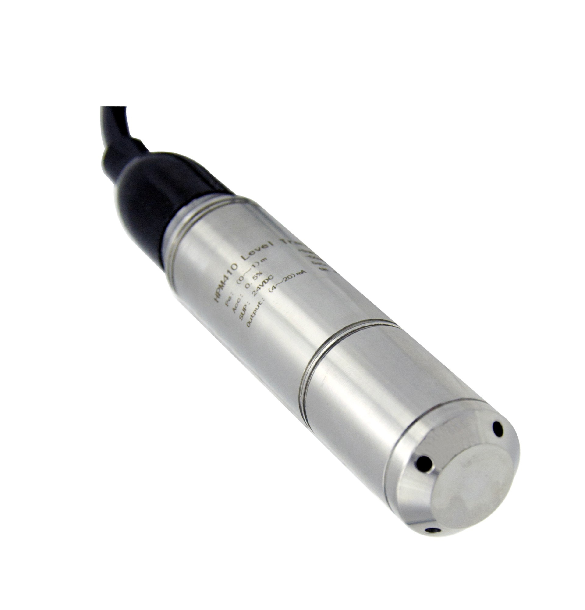 HPM410投入式液位变送器采用全密封潜入式结构。该型变送器选用经过长期稳定性和可靠性试验的压力传感器及高精度的信号调理专用电路装入一个不锈钢壳体组成,一体化的结构和标准化的信号,为现场使用和自动化控制提供了方便。专用电缆与外壳密封连接,可长期投入与变送器结构材料相兼容的液体中使用。该产品外壳采用全焊接工艺,同时在壳体、电缆等各个环节的连接都进行了多重设计的可靠密封,内部采用全灌封工艺,确保了该产品有很好的使用寿命。 HPM410投入式液位变送器具有体积小、使用方便、长期稳定性好等特点,适用于江河湖泊的水位测量、容器和存储系统的液位测量、消防水池水箱液位监控、雨水污水提升泵和抽水站液位监控、窨井水位监控、城市供排水、水文勘探等领域进行水位或液位测量与控制。