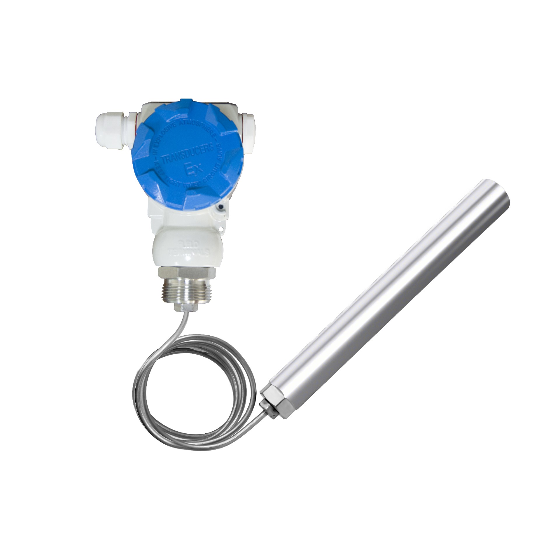 HPM420-T集气筒型耐高温投入式液位变送器由不锈钢集气筒、不锈钢毛细管及接线盒组成。传感器与信号处理电路设计在接线盒内部,集气桶投入到被测液体内部,负责采集压力信号。集气桶内的气体采集到的液位压力信号通过不锈钢毛细管将压力传递给传感器,由此避免了传感器与被测介质的直接接触,适应于高温腐蚀性等场合,有效地解决了高温腐蚀液体以及污水液位测量的难题。 HPM420-T集气筒型耐高温投入式液位变送器广泛应用于环保、水利、变频供水、工业过程控制、化工等领域的液位测量控制控制。