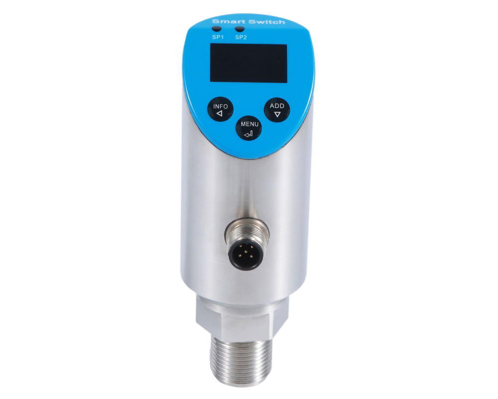HPM5010型智能压力控制器采用高集成度ARM工业级MCU为核心,结合高精度AD转换器和高稳定性压力传感器,经过精心调校,确保快速精准的压力测量和开关动作。三个大带背光的触摸按钮与显示于一体的设计,使得现场参数设置非常方便。该产品集压力开关、变送器与显示于一体。它标配2路开关输出(PNP或NPN)、1路模拟输出信号以及1路RS485接口。该产品用于液体及气体介质的压力监测,适用于机械制造、机床系统、液压及气动系统、压力监控、泵及压缩机等一般工业领域。