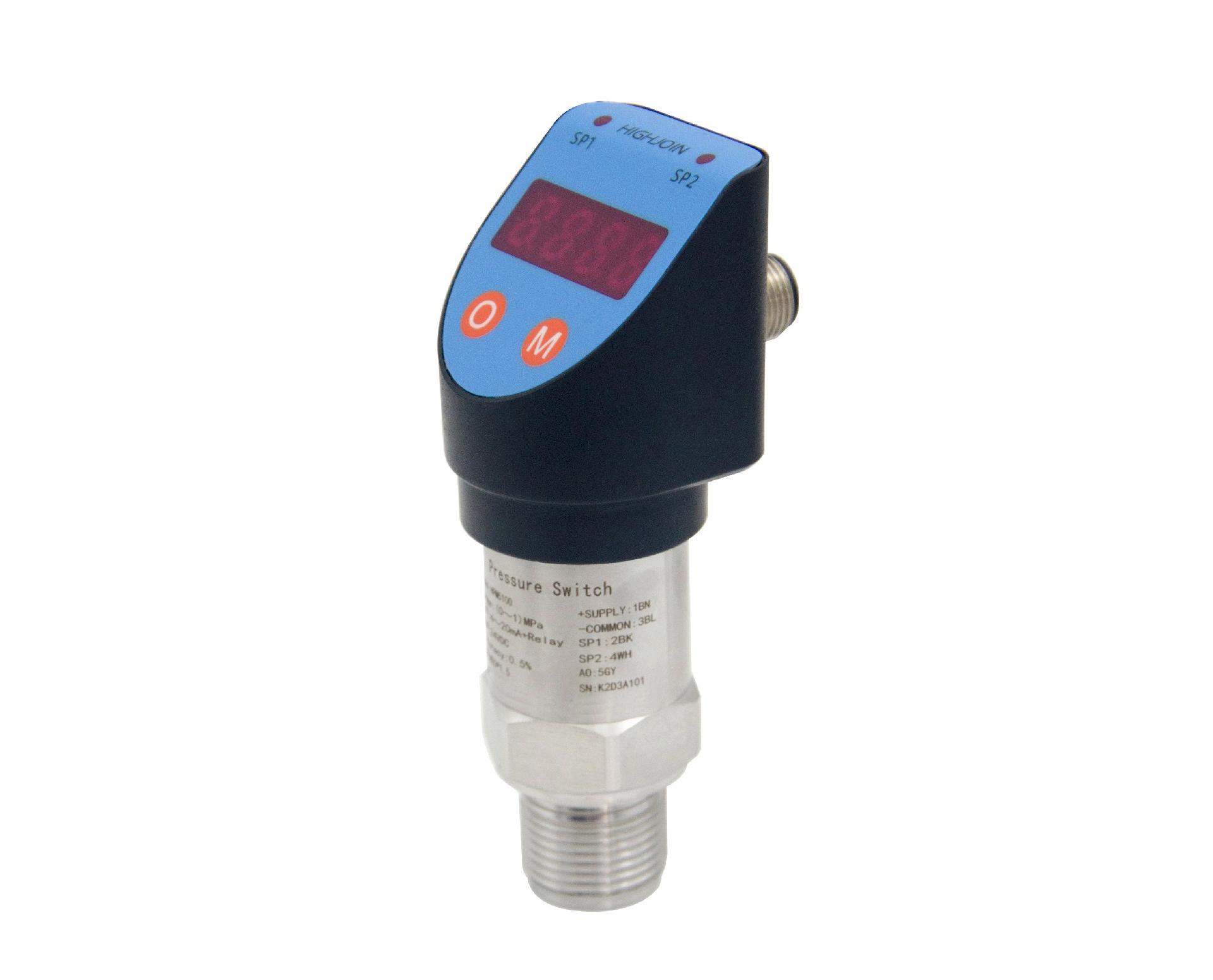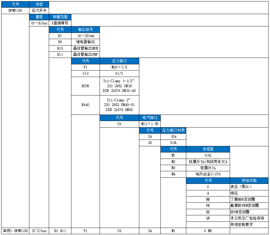 HPM5100型智能压力开关为全电子结构,前端采用高精度和高稳型硅压阻传感器,经专用信号调理电路处理,带现场显示,可输出一路4~20mA模拟量,同时可以输出两路电子开关量或一路继电器开关量。该产品压力接口多样,支持螺纹安装或卡盘安装等接口。 该产品体积小巧,集压力测量、显示、输出和控制于一体,使用灵活,操作简单,安全可靠,广泛应用于各类自动化机械和设备、环保、石化、水处理等行业。