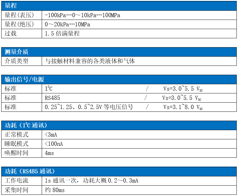 ◆ 物联网专用压力测量 ◆ 可外接锂电池供电 ◆ 低功耗 ◆ 支持I2C、RS485或电压信号输出 ◆ 体积小巧,易于安装