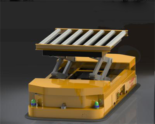 顶升式AGV主要特点是: 1.尺寸按照要求自订,附带其它要求功能等; 2.精巧的驱动模块设计,不打滑,运行轻巧自如,强弯度转弯; 3.原地旋转技术,转弯掉头原地就行,非常适合大部分通道等空间有限的场合; 4.车体配有操作按键,操作简便(按下就走,到站点自动停止),无须培训; 5.运行速度可达1m/s(速度可随意调),满足绝大多数的车间物流需求; 6.多级安全防护配置,远距减速->近距停止->碰撞急停;