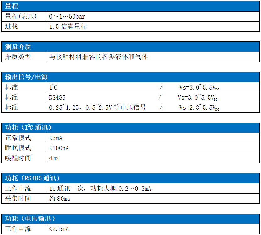 ◆ 物联网专用压力测量 ◆ 可外接锂电池供电 ◆ 低功耗 ◆ 支持I2C、RS485或电压信号输出 ◆ 体积小巧,易于安装
