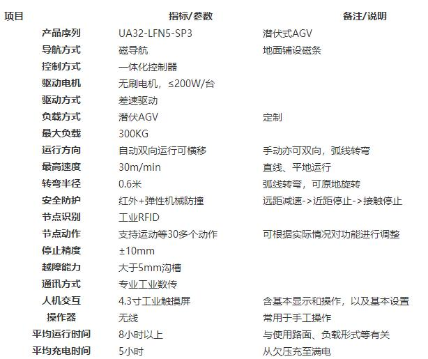 AGV仓储叉车指装备有电磁或光学等自动导引装置,能够沿规定的导引路径行驶,具有安全保护以及各种移载功能的运输机器人。AGV产品体系涵盖了叉车式、潜入式、移载式、牵引式以及轻载多向移动式。 自主定位导航:采用激光SLAM导航,二维码导航、惯性导航等技术实现准确定位。 柔性运动控制:采用双轮差速驱动,支持前进、后退、原地旋转等运动控制,运动过程平滑柔顺。 智能电源管理:支持多等级电量阀值控制,低电量时自主充电,完成充电后自主返回工作。 多重安全防护:支持前远距离检测,前近距离检测,前碰撞检测,前急停按钮等多级安全防护,实现安全可靠的运动控制。 大型货物搬运:支持1000kg货物举升、搬运、下放。 设备状态指示:通过三色指示灯,提示电量、设备状态等。 无线网络通信:支持 WIFI 网络通信和无缝漫游,网络覆盖区域无障碍运行。 人机交互友好:声音告警提示。