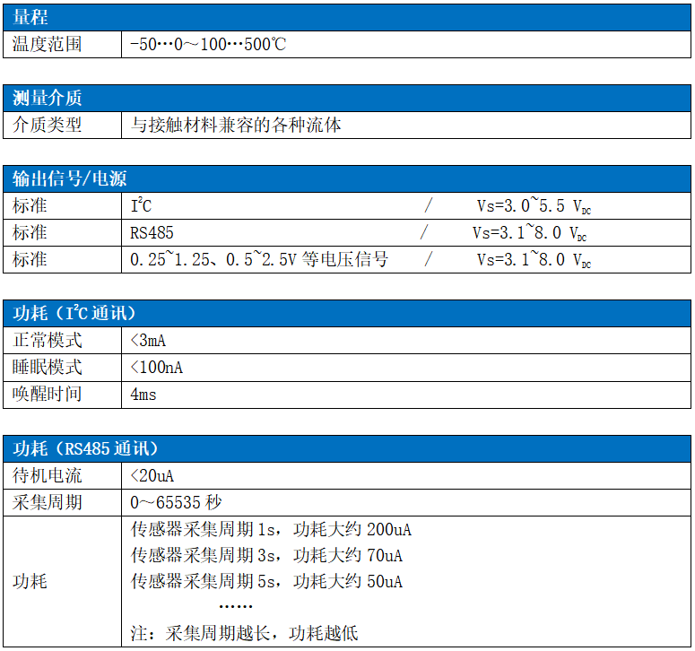 ◆ 物联网专用温度测量 ◆ 可外接锂电池供电 ◆ 低功耗 ◆ 支持I2C、RS485或电压信号输出 ◆ 体积小巧,易于安装