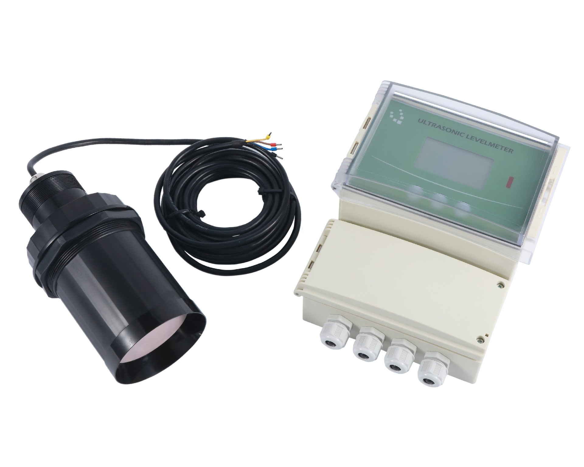 HWU32分体式超声波物位计是一种物位开关。超声波物位计的工作原理是由换能器(探头)发出高频超声波脉冲遇到被测介质表面被反射回来,部分反射回波被同一换能器接收,转换成电信号。超声波脉冲以声波速度传播,从发射到接收到超声波脉冲所需时间间隔与换能器到被测介质表面的距离成正比。此距离值S与声速C和传输时间T之间的关系可以用公式表示:S=CxT/2。由于发射的超声波脉冲有一定的宽度,使得距离换能器较近的小段区域内的反射波与发射波重迭,无法识别,不能测量其距离值。这个区域称为测量盲区。盲区的大小与超声波物位计的型号有关。