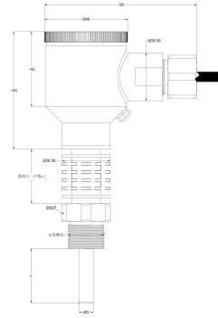 螺纹结构温度传感器/变送器HTM128-LW外形尺寸图