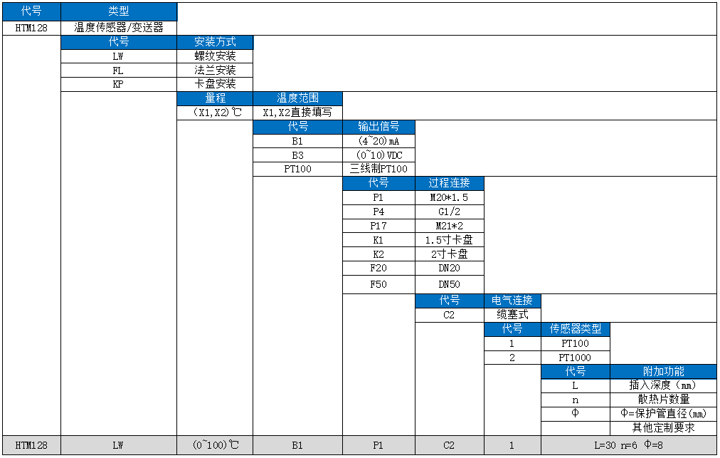 HTM128系列温度传感器/变送器采用PT100或热电偶等作为信号测量元件,放大电路位于防护壳体内,将传感器信号转换为标准信号。整个产品经过了元器件、半成品及成品的严格测试及老化。该产品以其优良的可靠性,广泛的适应性,产品的灵活性和多样性,广泛应用于石油、化工、冶金、电力、水文等工业过程现场温度测量和控制中。信号处理单元内置信号调理电路将传感器信号转换为标准电流或电压信号输出。其强大的功能和高速的运算能力保证HTM128系列温度传感器/变送器的优良品质。整个的设计框架着眼于可靠性、稳定性、高精度和智能化。