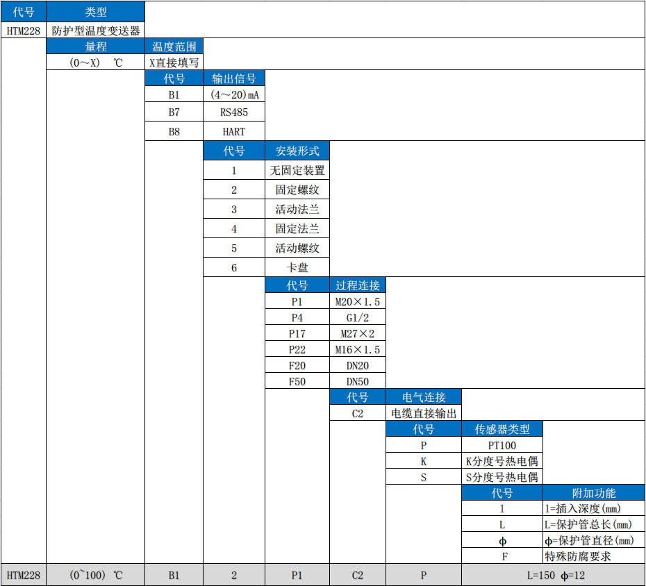 HTM228防护型温度变送器采用PT100等作为信号测量元件,放大电路位于防护型壳体内,将传感器信号转换为标准信号。整个产品经过了元器件、半成品及成品的严格测试及老化。该产品以其良好的可靠性,广泛的适应性,产品的灵活性和多样性,广泛应用于石油、化工、冶金、电力、水文等工业过程现场温度测量和控制中。