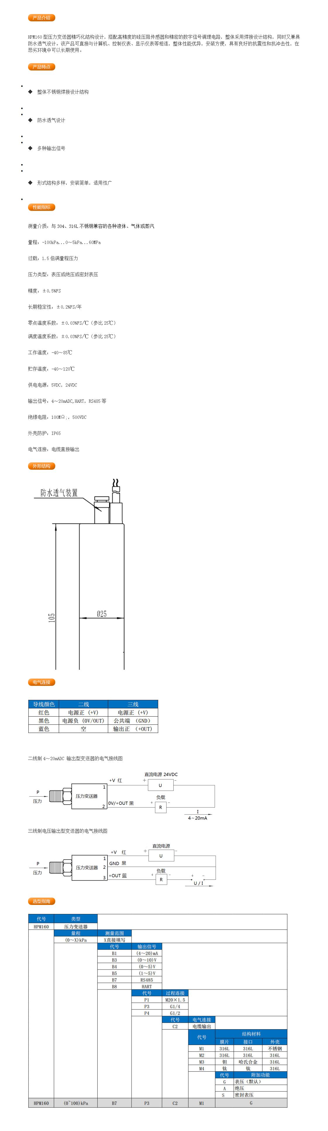 > 压力仪表系列 > HPM160型压力变送器